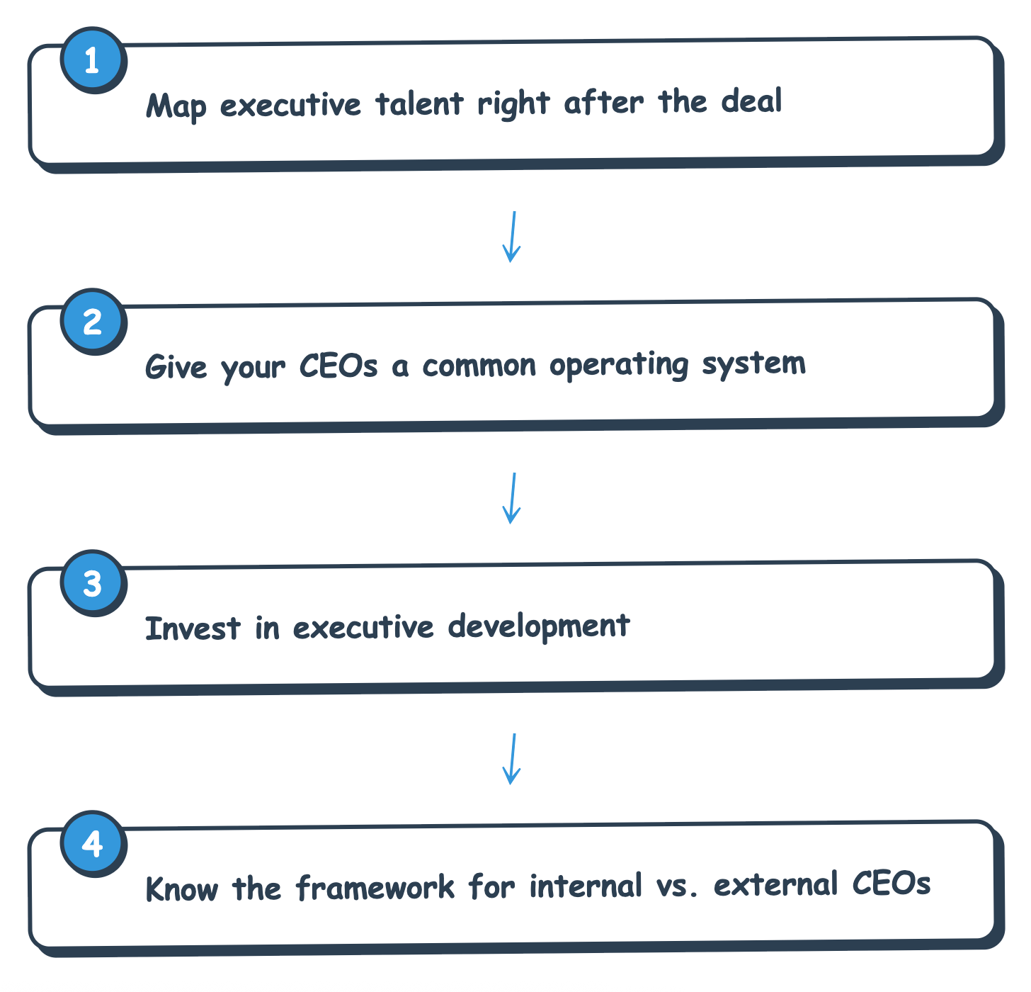 Within 90 days of closing each deal, identify the high-potential executives at the portfolio company. Within six months, assess who could potentially grow into CEO-level capability. Don’t wait for a CEO opening to start this evaluation.