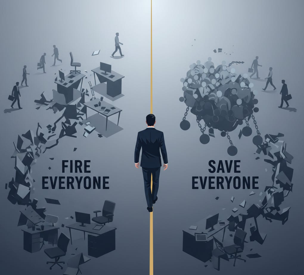 Neither approach works. The first kills your organization slowly. The second kills morale and trust immediately