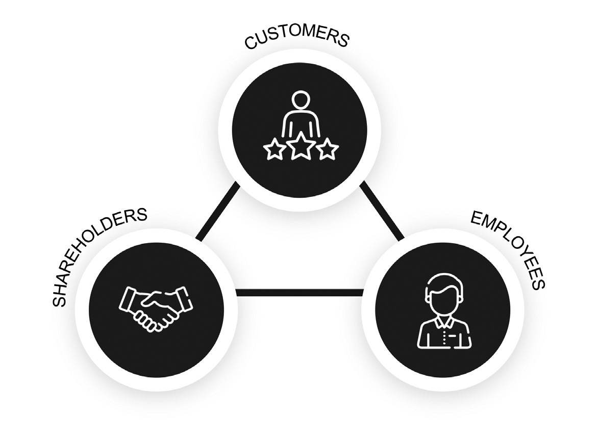 I constantly use this framework in my work with CEOs. Anytime a CEO or company is struggling, it’s usually because they have over- or under-emphasized one of the three groups (customers, employee, or shareholders) that form a triangle at the center of their business.